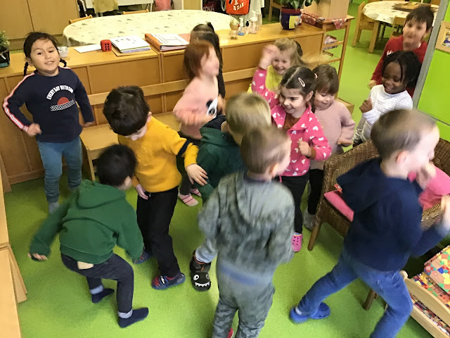 En ook nu weer werkt de juf aan haar conditie - sleetje rijden voor de kleuters,